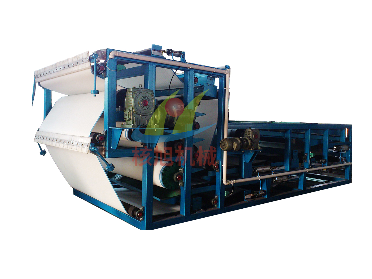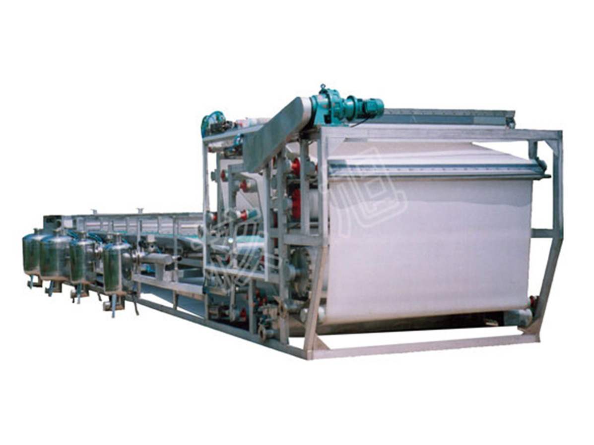核心优势:真空过滤+机械压榨”双重脱水技术,先通过真空抽吸去除大部分游离水,再经高压压辊(线压力≥5MPa)挤出毛细水,滤饼含水率低至18%-22%;
